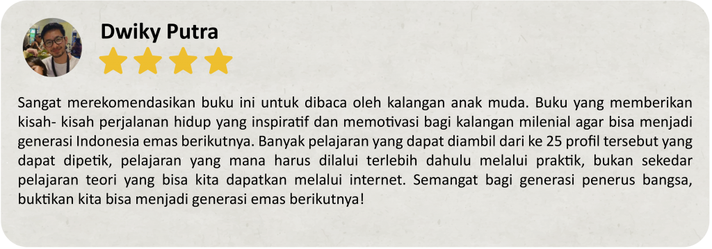 Tentunya para Tokoh ini sangat menginsipirasi dan membawa perubahan. Suatu kebanggaan dan hal yang luar biasa karena Saya bisa berbagi pengalaman hidup sampai saya bisa menjadi seperti sekarang di dalam buku ini.